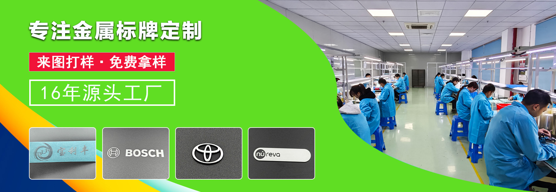 深圳市寶利豐精密發展有限公司成立于2013年10月,屬于臺灣、大陸合資企業,位于深圳市寶安區沙井街道西環路1007號,廠房面積1800㎡,員工管理團隊130多人。致力于各類標牌銘板,從設計、生產一條龍服務。